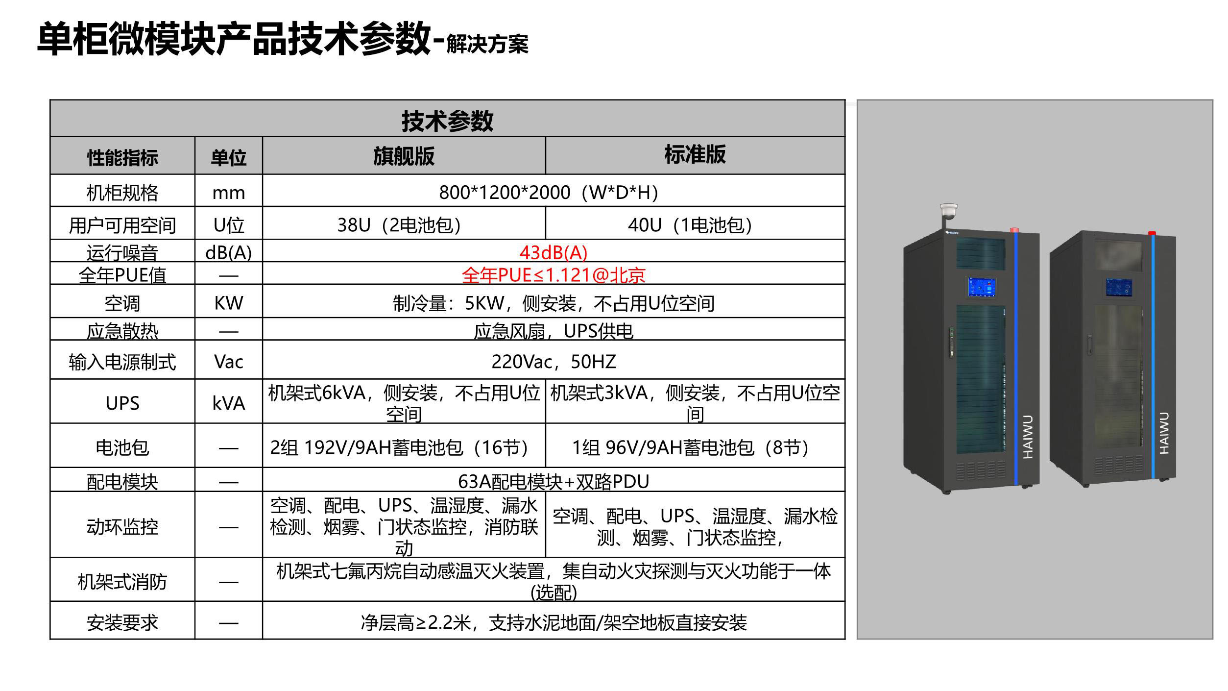 Hyper-Block“灵” 单柜微模块, 是一款具备“更高效制冷,高可靠供配电、 更优气流布局、安全智能、 静音高效”功能的综合解决方案产品。 小空间,大容量,用户最大可使用空间达43U。 能够更好的满足各种边缘计算场景使用需求, 特别适用于各类对噪音有严格管控要求的场景。
