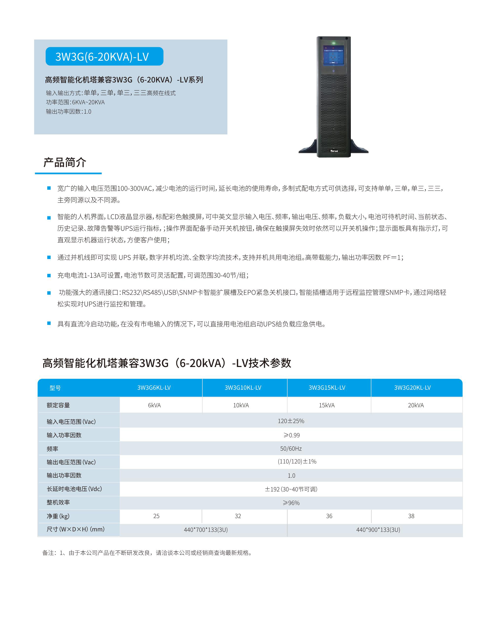 高频智能化机塔兼容3W3G(6-20KVA)-LV系列