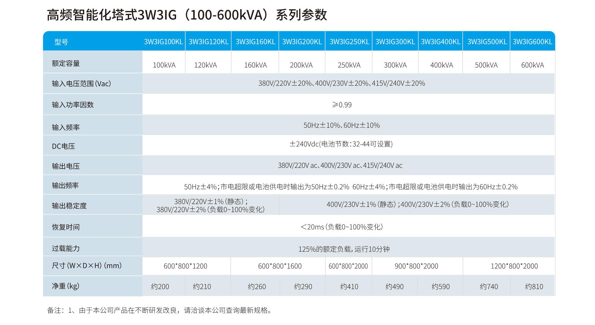 高频智能化塔式3W3IG(100-600KVA)系列
