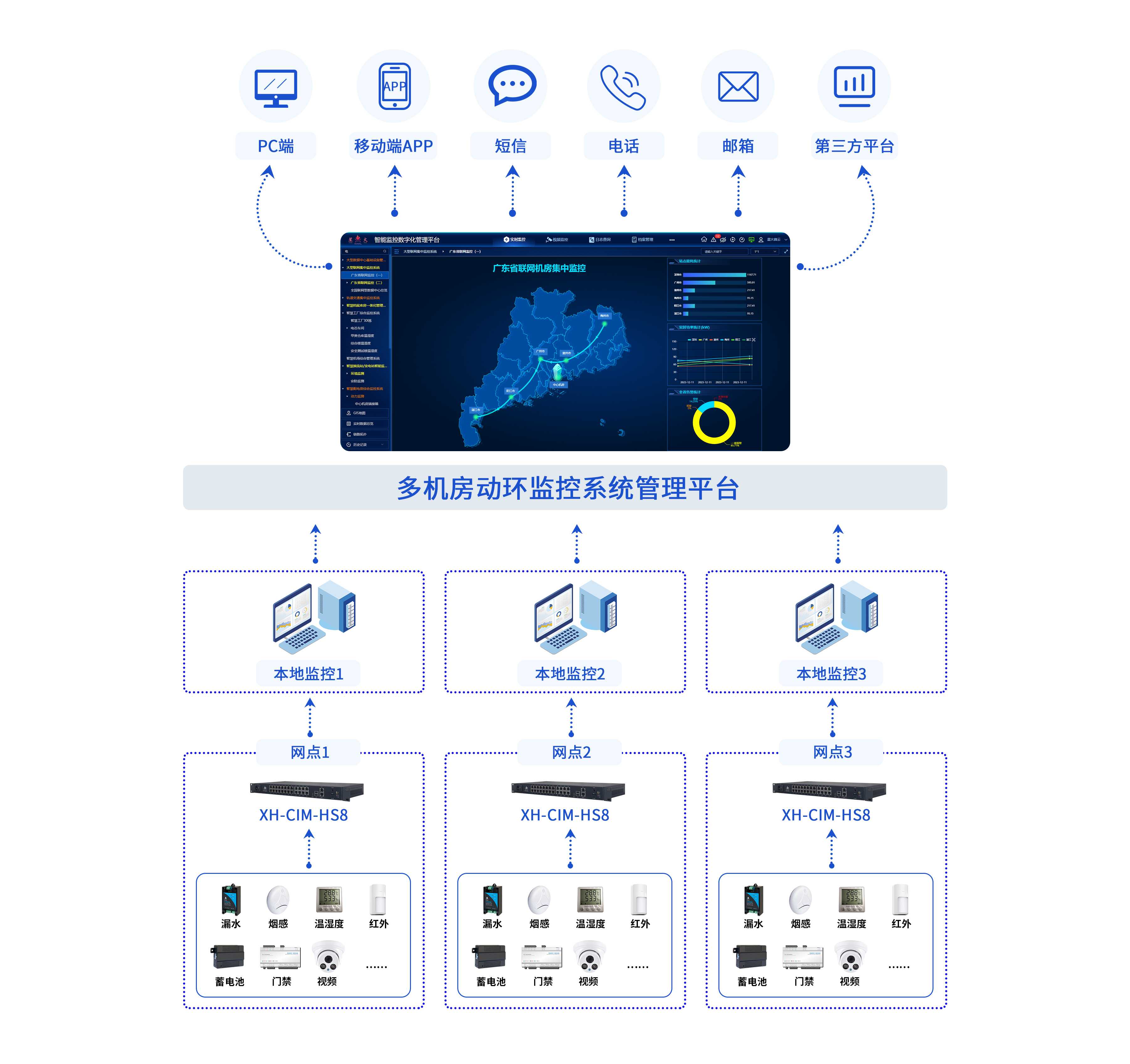 多机房跨区域集中监控管理,可直观掌握多个机房监控状态。