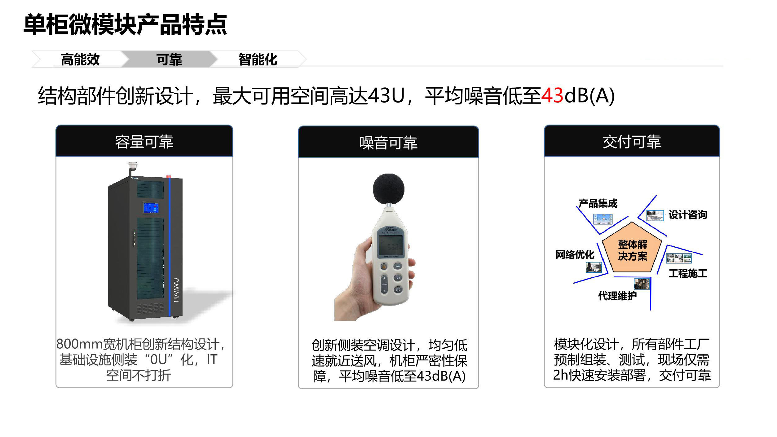 Hyper-Block“灵” 单柜微模块, 是一款具备“更高效制冷,高可靠供配电、 更优气流布局、安全智能、 静音高效”功能的综合解决方案产品。 小空间,大容量,用户最大可使用空间达43U。 能够更好的满足各种边缘计算场景使用需求, 特别适用于各类对噪音有严格管控要求的场景。