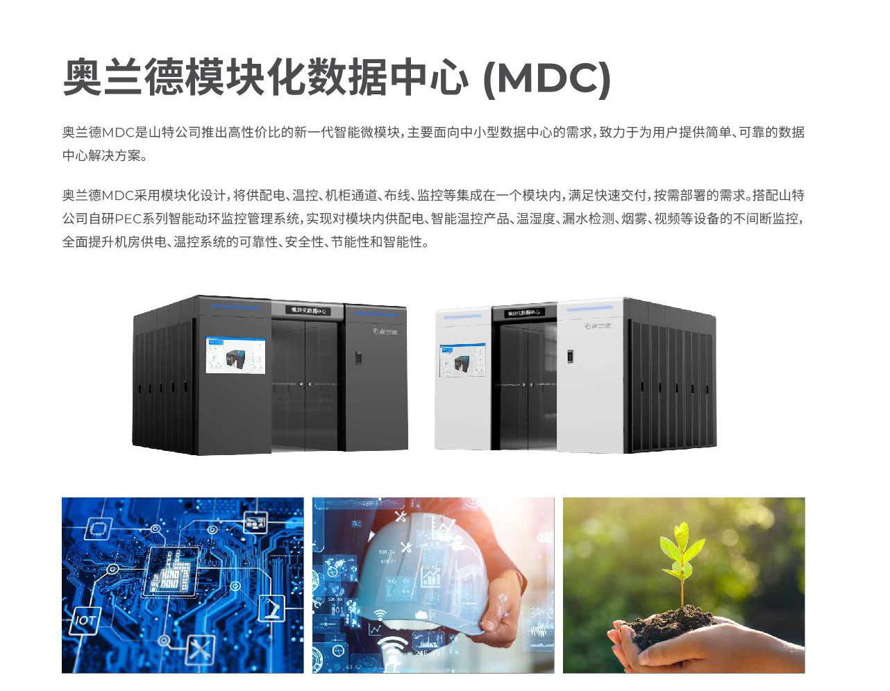 奥兰德MDC是山特公司推出高性价比的新一代智能微模块,主要面向中小型数据中心的需求,致力于为用户提供简单、可靠的数据中心解决方案。