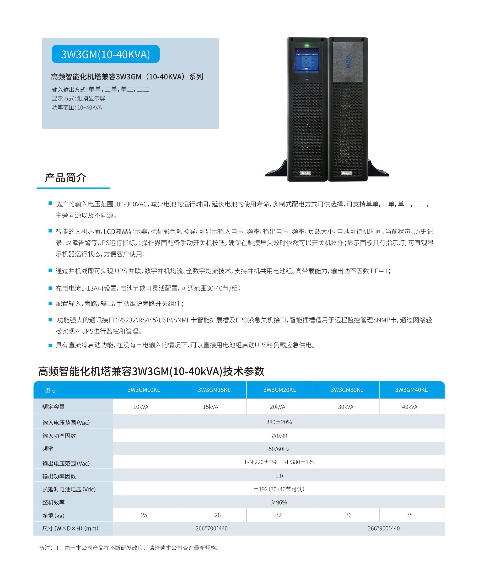 高频智能化机塔兼容3W3GM(10-40KVA)系列